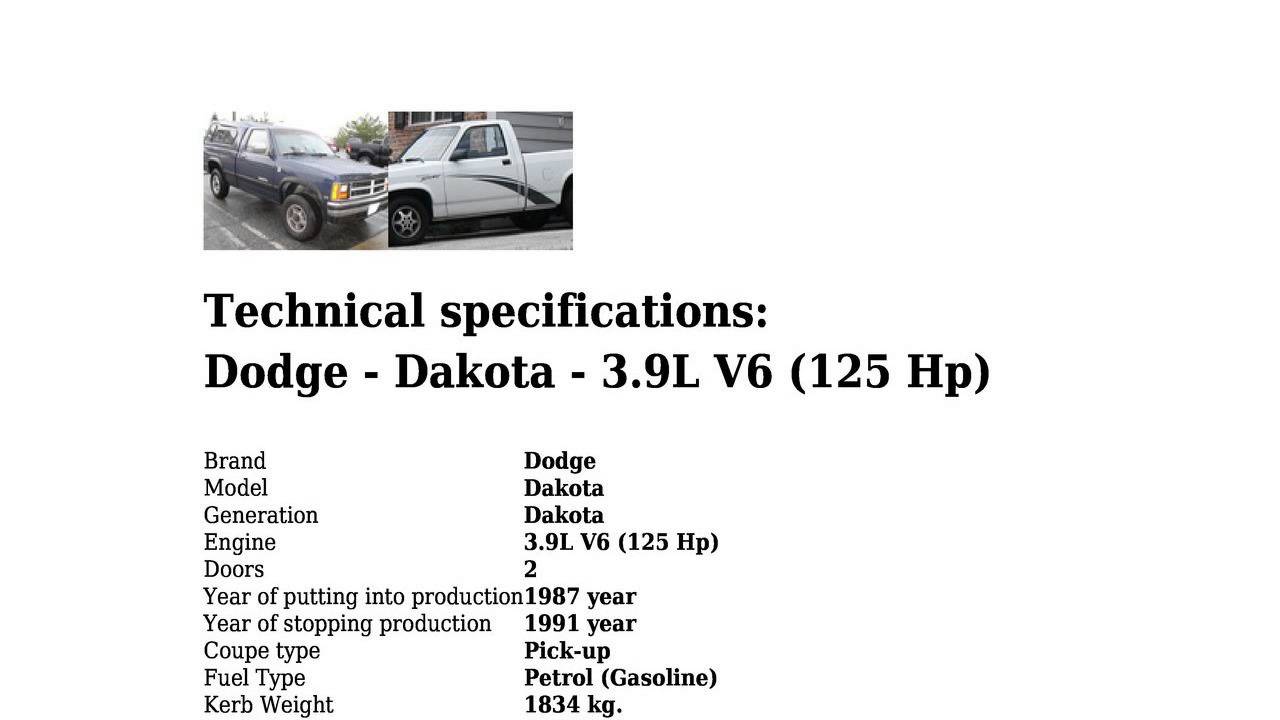 Dodge Dakota 3 9l V6 125 Hp Technical Specifications Youtube